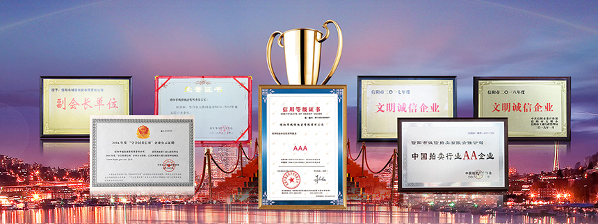 誠信拍賣公司先后被授予“中國拍賣行業(yè)AA級企業(yè)”、“河南省拍賣行業(yè)優(yōu)秀企業(yè)”、“守合同重信用企業(yè)”、“信陽市文明誠信企業(yè)”等多項殊榮。公司自有辦公場地2800平方米,是目前信陽市拍賣行業(yè)實體規(guī)模大、美譽度高的企業(yè)。>>查看更多>>